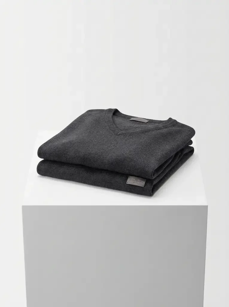 Pure Mongolian cashmere in a relaxed V-neck silhouette. Ribbed cuffs and hem provide structure while the body drapes beautifully.